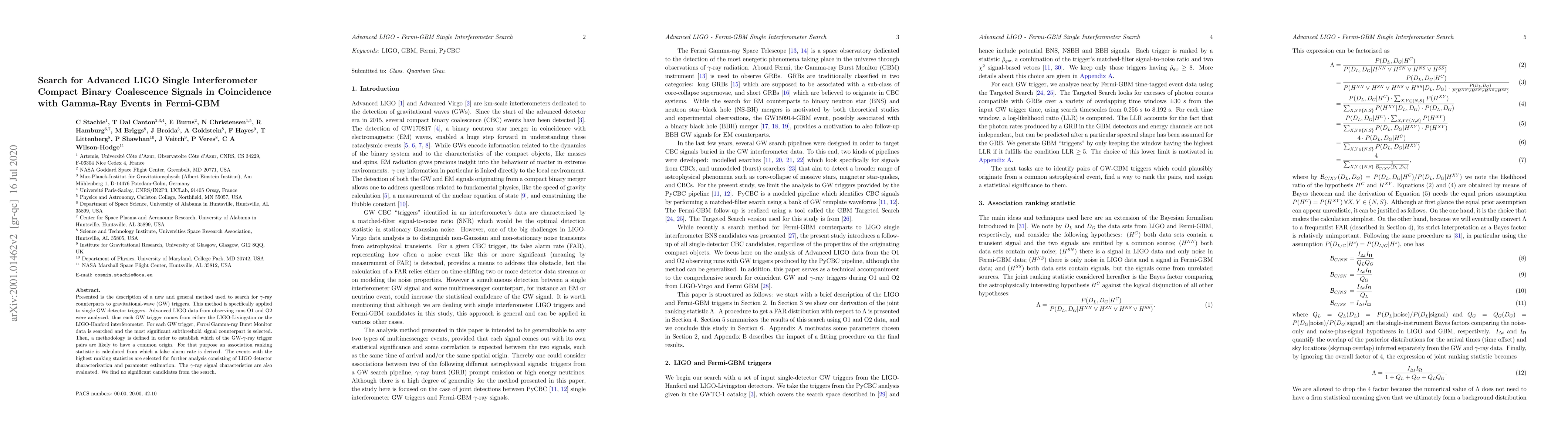 Presented is the description of a new and general method used to search for $\gamma$-ray counterparts to gravitational-wave (GW) triggers. This method is specifically applied to single GW detector triggers. Advanced LIGO data from observing runs O1 and O2 were analyzed, thus each GW trigger comes from either the LIGO-Livingston or the LIGO-Hanford interferometer. For each GW trigger, Fermi Gamma-ray Burst Monitor data is searched and the most significant subthreshold signal counterpart is selected. Then, a methodology is defined in order to establish which of GW-$\gamma$-ray pairs are likely to have a common origin. For that purpose an association ranking statistic is calculated from which a false alarm rate is derived. The events with the highest ranking statistics are selected for further analysis consisting of LIGO detector characterization and parameter estimation. The $\gamma$-ray signal characteristics are also evaluated. We find no significant candidates from the search.