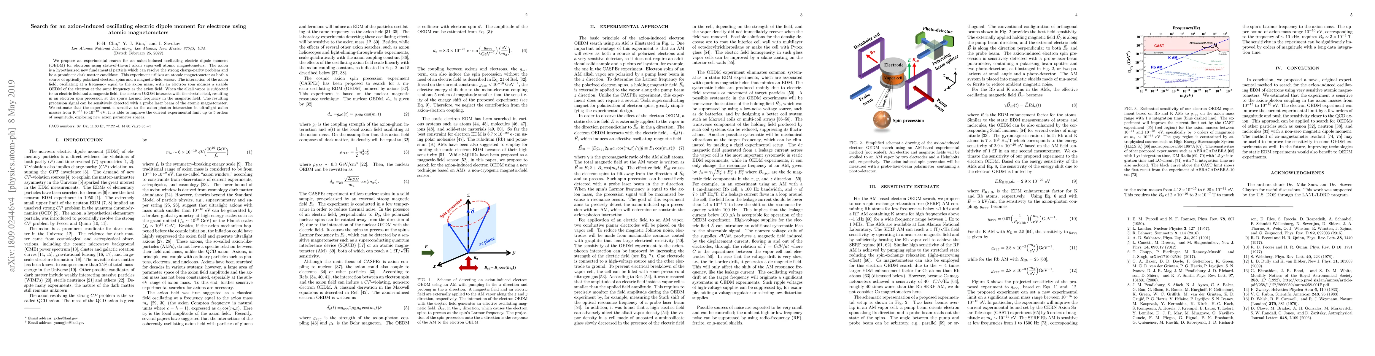The electron OEDM is defined as de(t) = 2ga(a0fa)μBcos(θ) in [34]. The authors also suggested that the electron OEDM could be three orders of magnitude larger than that of nucleons, herewith defined as aγγ ≡ ga/fainordertocomparewithotherexperiments.