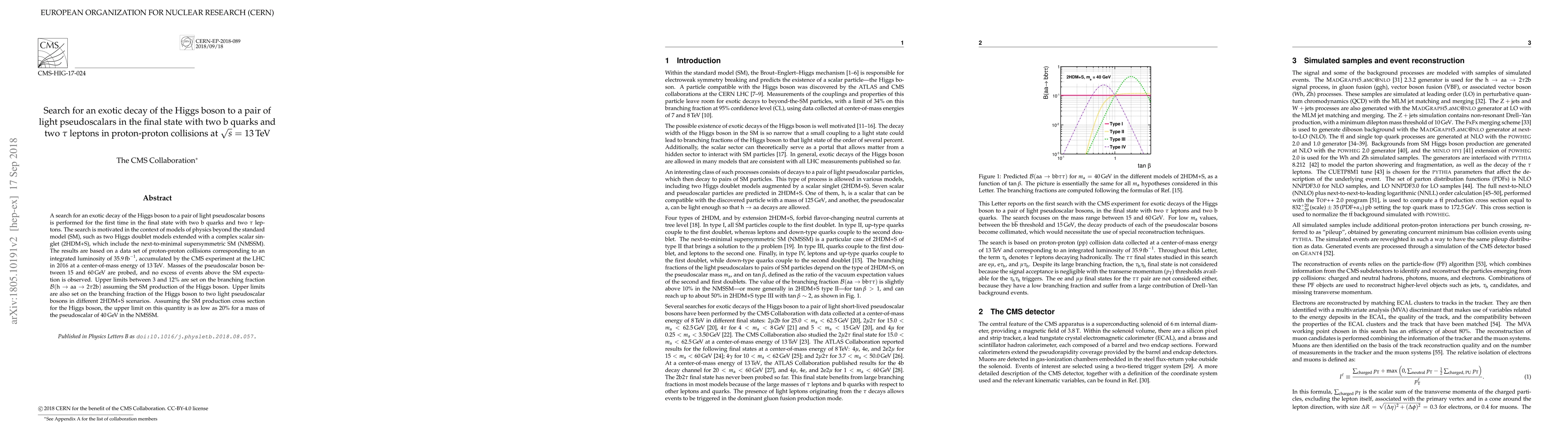 Researchers searched for a rare decay of the Higgs boson into a pair of light pseudoscalars in proton-proton collisions, finding no evidence of such decays and setting upper limits on possible branching fractions.