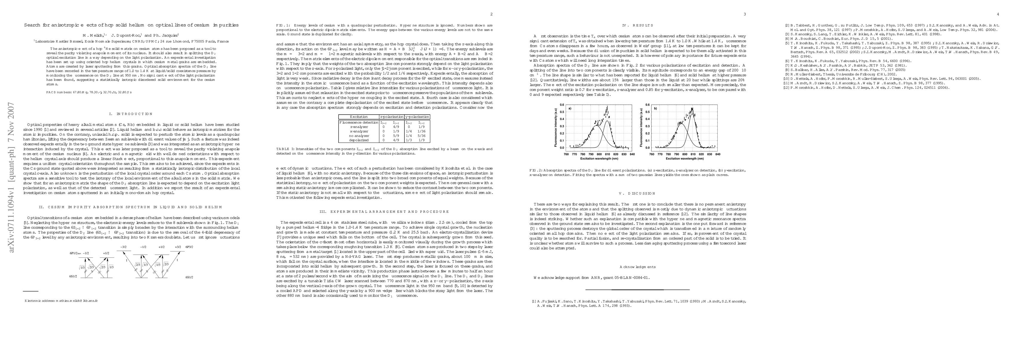 This study investigates the anisotropic effect of hcp solid helium on cesium impurities, aiming to detect the parity violating anapole moment. No significant polarization-dependent splitting of the D2 line was observed, indicating an isotropic environment for cesium atoms in the solid helium matrix.