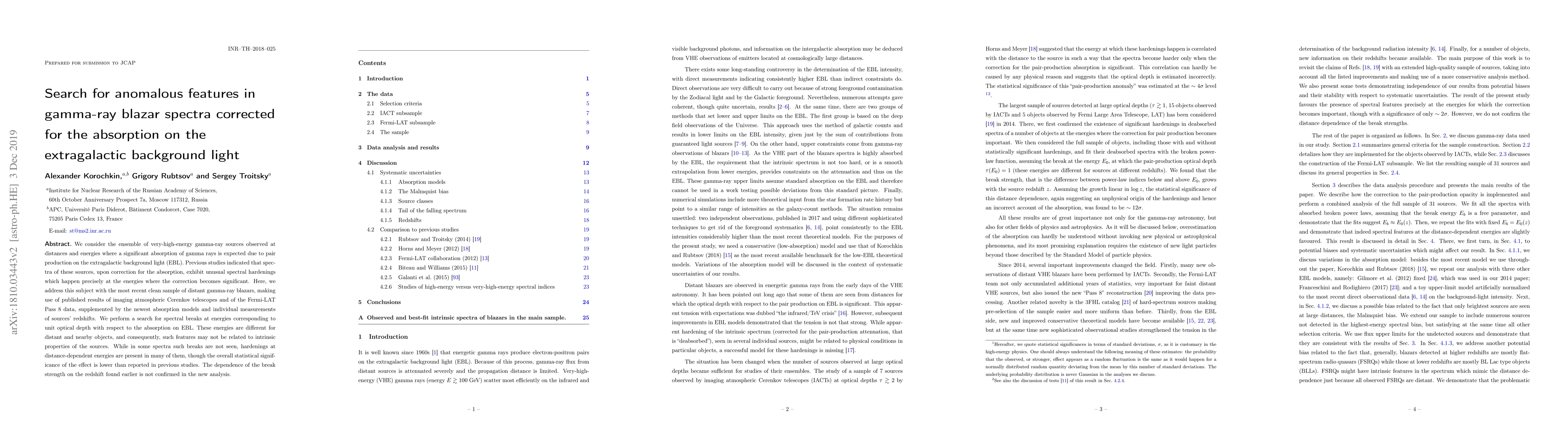 A study of gamma-ray blazar spectra found hardenings at certain energies after correcting for extragalactic background light absorption, but the effect's statistical significance is lower than previous reports.