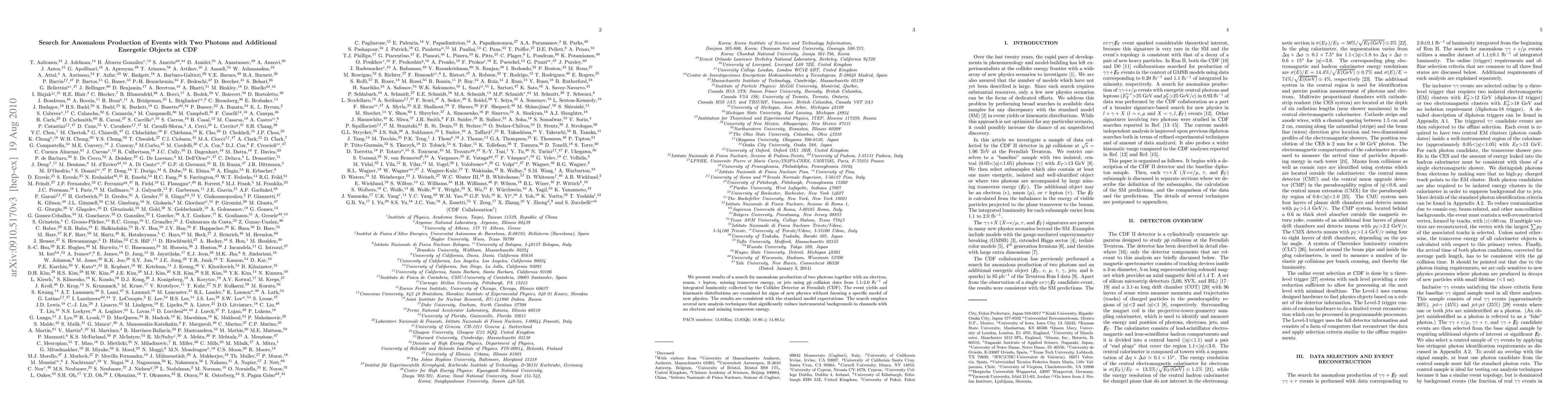 Researchers at CDF searched for signs of new physics in collisions with 1.1-2.0 fb$^{-1}$ luminosity and found no evidence of anomalous production of two photons with other particles.
