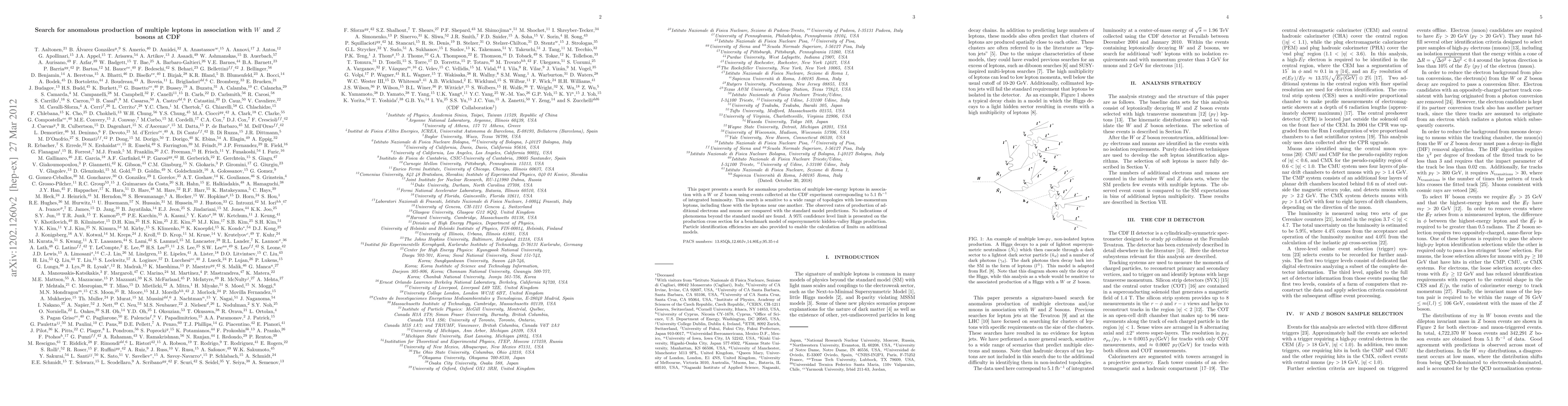 Researchers searched for unusual production of multiple low-energy leptons associated with W and Z bosons at CDF experiment; no evidence of phenomena beyond the standard model was found.