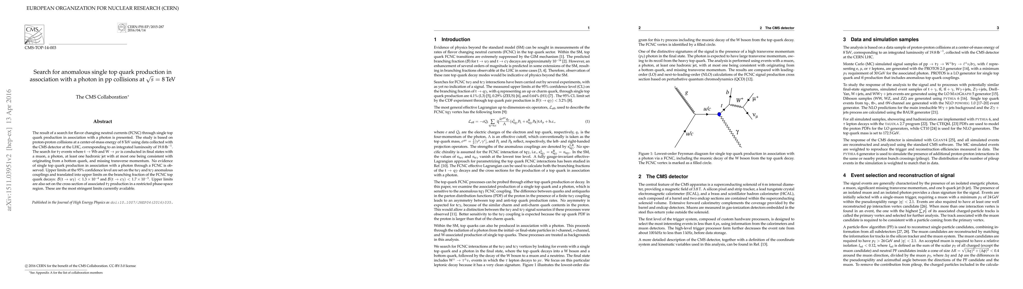 This study investigates anomalous single top quark production in association with a photon via flavor-changing neutral currents at 8 TeV proton-proton collisions using the CMS detector. No evidence of such FCNC processes is found, leading to stringent upper limits on the corresponding branching fractions and cross sections.