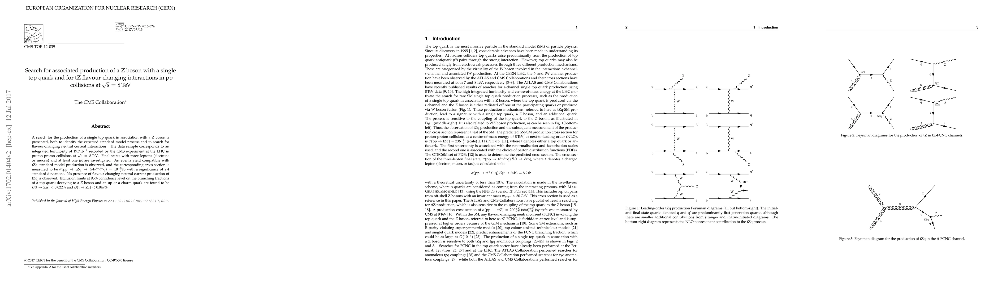 This paper reports a search for the associated production of a Z boson with a single top quark in proton-proton collisions at 8 TeV, observing a standard model process with a cross section of 10 +8/-7 fb and setting exclusion limits on flavour-changing neutral currents. No evidence for flavour-changing neutral current interactions was found.