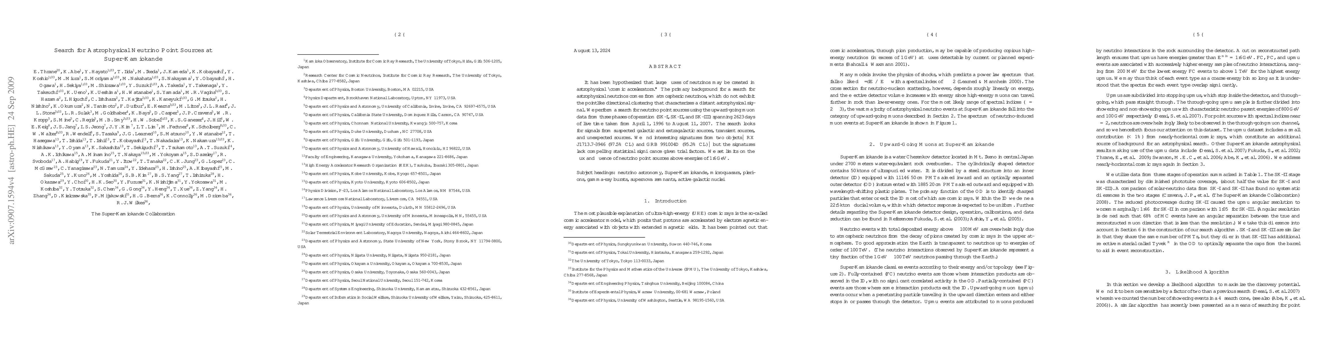 This paper reports a search for astrophysical neutrino point sources using data from Super-Kamiokande spanning 2623 days, identifying potential signals from RX J1713.7-3946 and GRB 991004D, but finds insufficient statistical significance to confirm these as neutrino sources. The study also sets limits on the flux of neutrino point sources above 1.6 GeV.