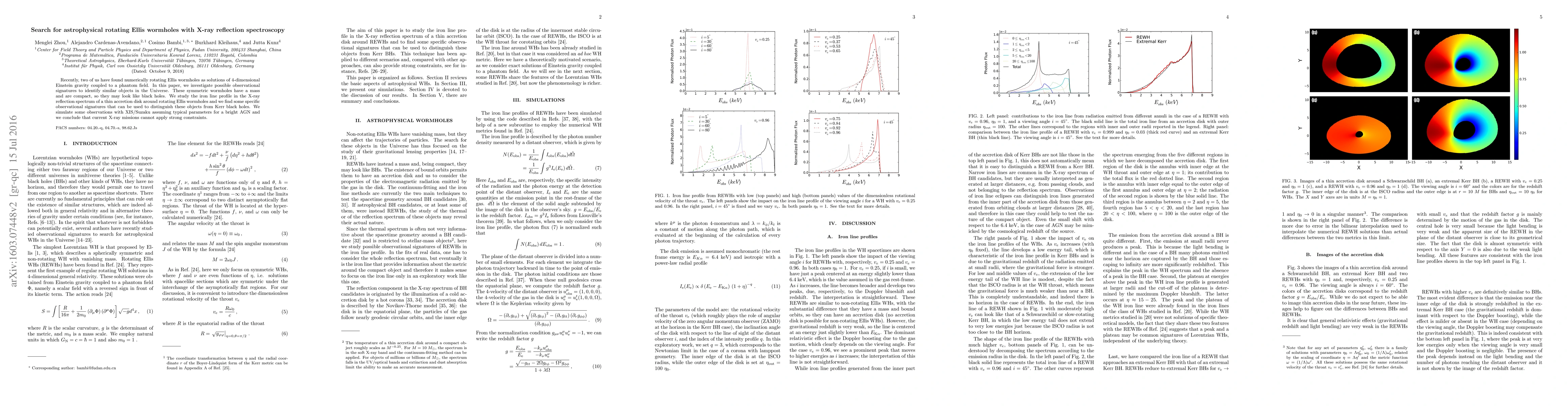This paper explores the potential observational signatures of rotating Ellis wormholes in the universe using X-ray reflection spectroscopy. It finds specific iron line profiles in the X-ray spectrum that can distinguish these wormholes from Kerr black holes, though current X-ray missions lack the sensitivity to provide strong constraints.