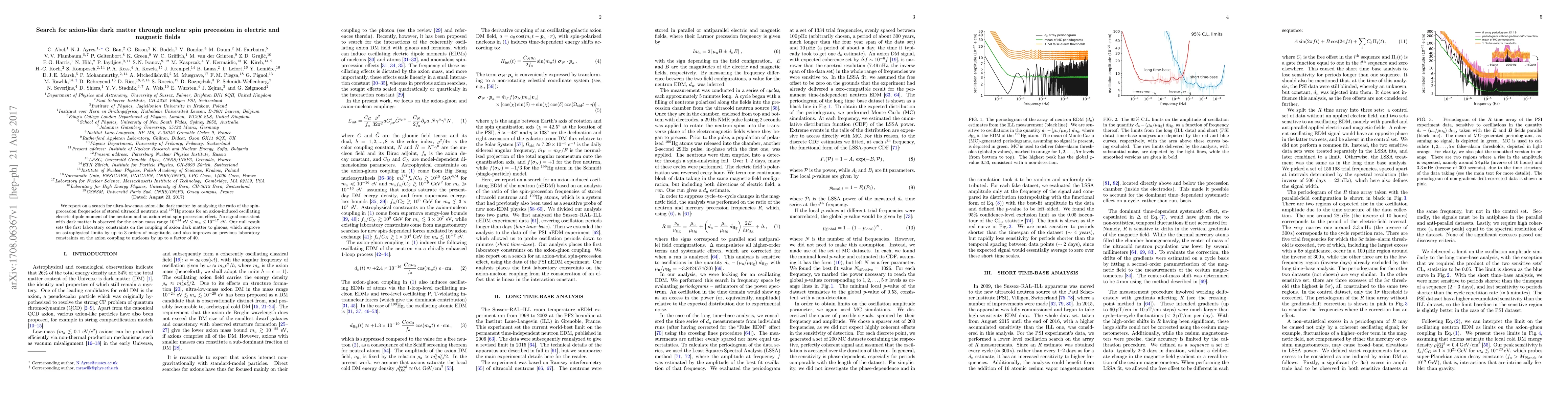 This research investigates ultra-low-mass axion-like dark matter via nuclear spin precession in electric and magnetic fields, finding no signal in the specified axion mass range. The study sets new laboratory constraints on axion-gluon and axion-nucleon coupling, surpassing previous limits by significant margins.