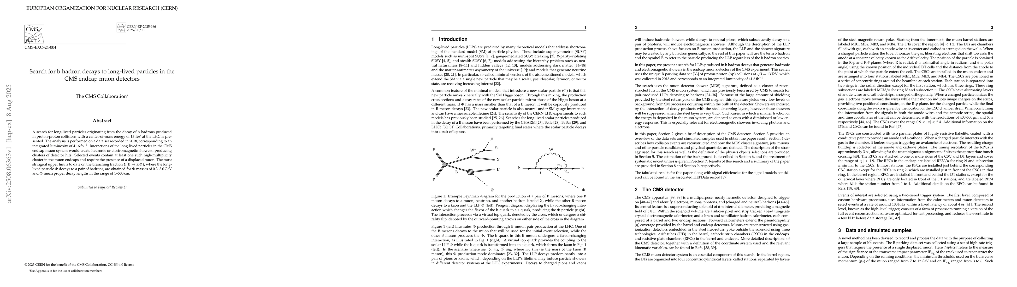 This work stands out by setting the most stringent upper limits on B(B $\to$ K$\Phi$) for long-lived particles $\Phi$ with varying masses and decay lengths, utilizing the unique capabilities of the CMS endcap muon detectors.