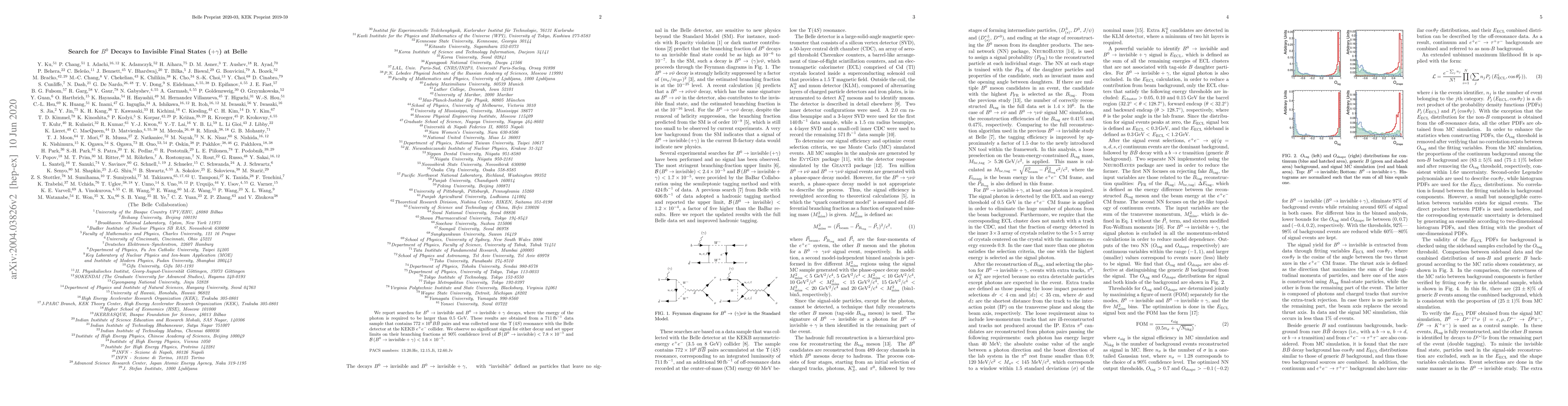 The Belle experiment searched for $B^0$ decays to invisible final states and $B^0$ decays to invisible plus photon with photon energy greater than 0.5 GeV, observing no significant signal and setting upper limits on their branching fractions at 90% confidence level.