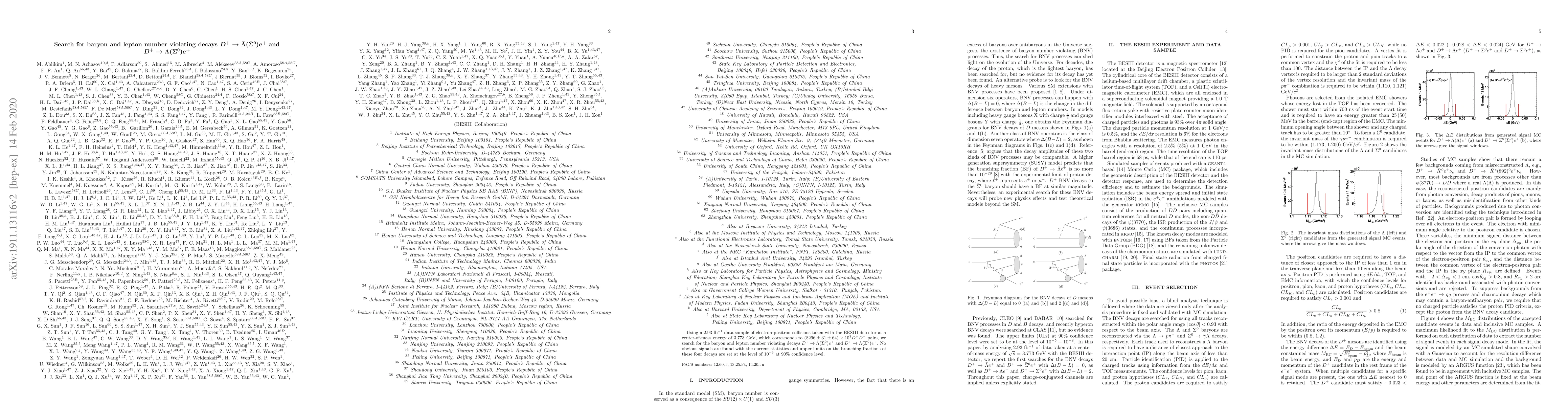 Researchers searched for rare decays involving a type of subatomic particle called D+ and found no evidence of baryon or lepton number violating decays, setting upper limits on the probabilities at 10^-6.