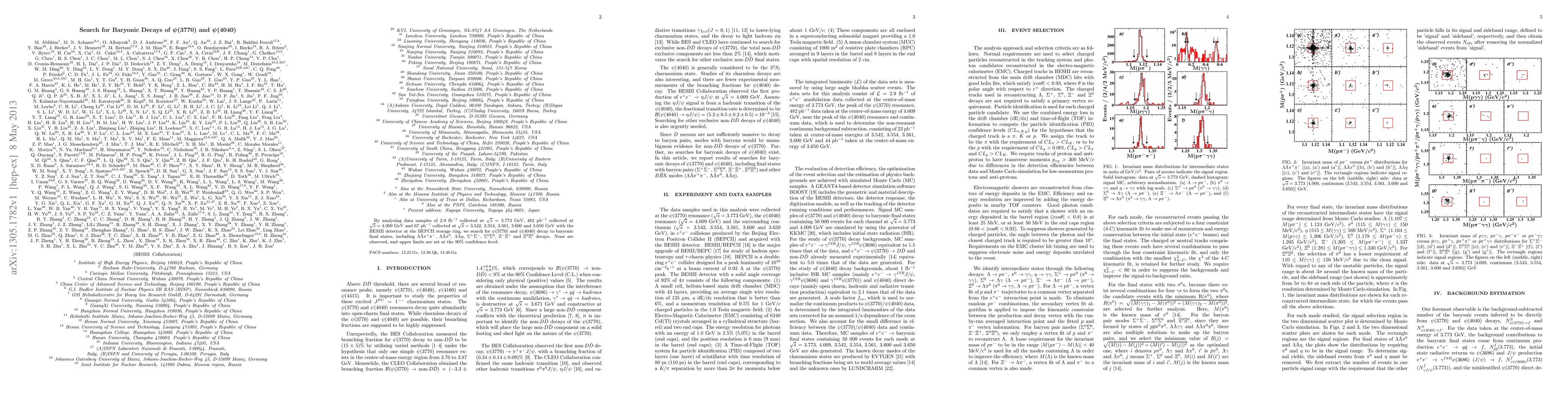 By analyzing data samples of 2.9 fb^{-1} collected at \sqrt s=3.773 GeV, 482 pb^{-1} collected at \sqrt s=4.009 GeV and 67 pb^{-1} collected at \sqrt s=3.542, 3.554, 3.561, 3.600 and 3.650 GeV with the BESIII detector at the BEPCII storage ring, we search for \psi(3770) and \psi(4040) decay to baryonic final states, including \Lambda\bar\Lambda\pi^+\pi^-, \Lambda \bar\Lambda\pi^0, \Lambda\bar\Lambda\eta, \Sigma^+ \bar\Sigma^-, \Sigma^0 \bar\Sigma^0, \Xi^-\bar\Xi^+ and \Xi^0\bar\Xi^0 decays. None are observed, and upper limits are set at the 90% confidence level.