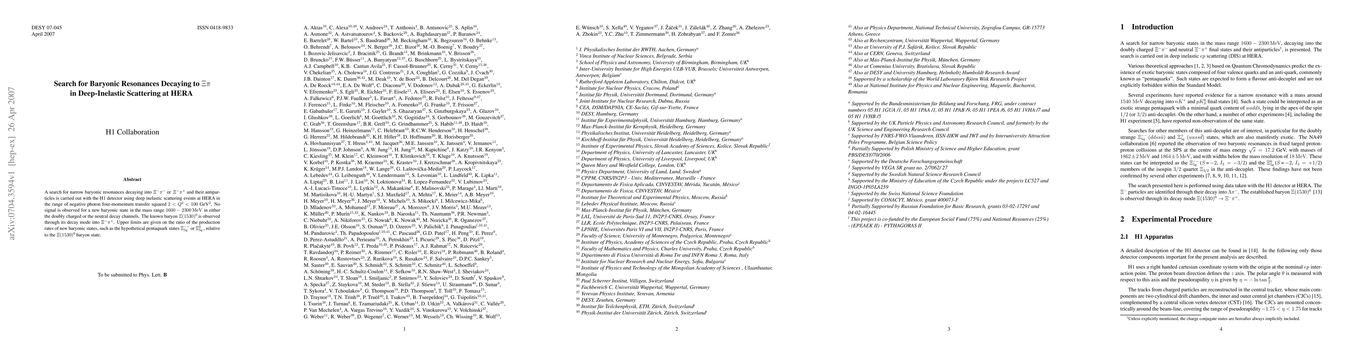 This study using the H1 detector at HERA finds no evidence for new baryonic resonances decaying into Xi- pi- or Xi- pi+ in the mass range 1600-2300 MeV, confirming the known Xi0 baryon and providing upper limits on potential new pentaquark states.