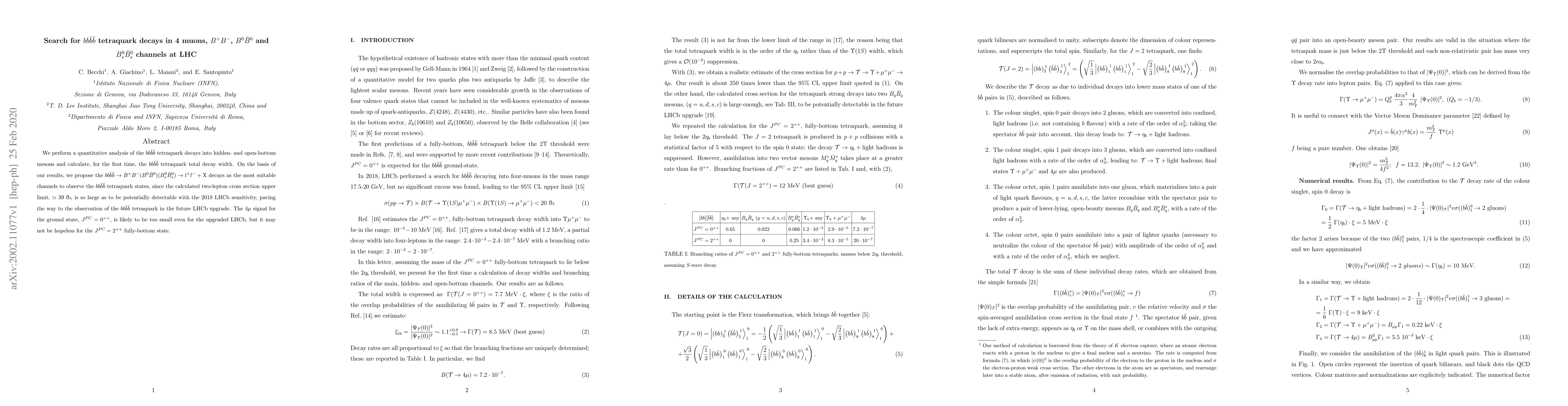 This paper investigates the potential decay modes of $bb\bar{b}\bar{b}$ tetraquarks into various bottom meson pairs, calculating their total decay width for the first time. The study suggests that $bb\bar{b}\bar{b} \to B^{+} B^{-}$ and similar channels are optimal for future detection due to a large calculated two-lepton cross section, potentially observable with the upgraded LHCb.