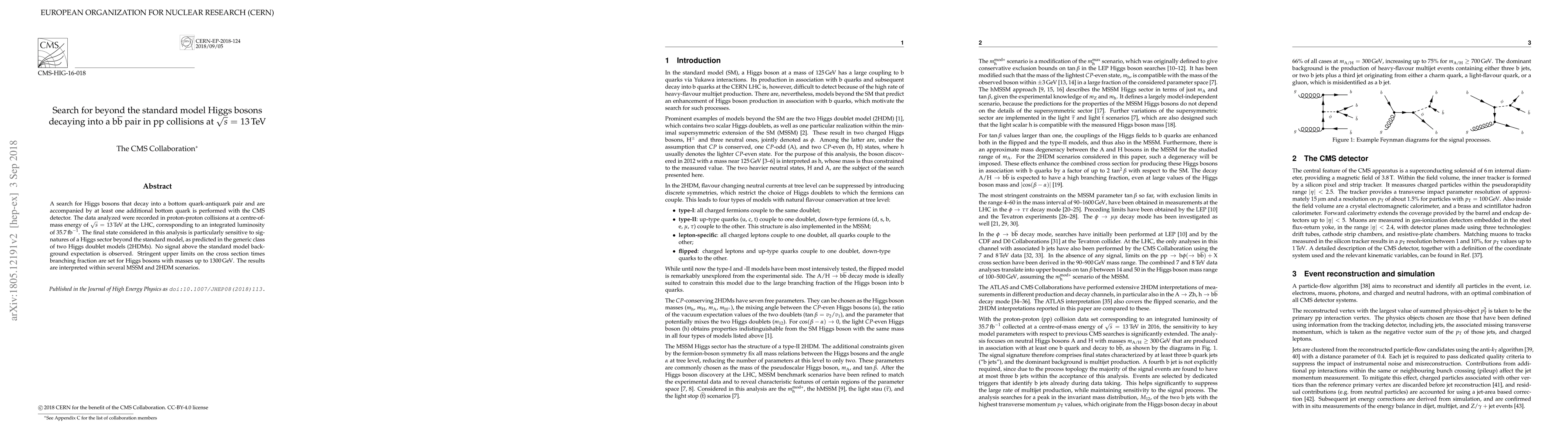 A search for Higgs bosons that decay into a bottom quark-antiquark pair and are accompanied by at least one additional bottom quark is performed with the CMS detector. The data analyzed were recorded in proton-proton collisions at a centre-of-mass energy of $\sqrt{s} =$ 13 TeV at the LHC, corresponding to an integrated luminosity of 35.7 fb$^{-1}$. The final state considered in this analysis is particularly sensitive to signatures of a Higgs sector beyond the standard model, as predicted in the generic class of two Higgs doublet models (2HDMs). No signal above the standard model background expectation is observed. Stringent upper limits on the cross section times branching fraction are set for Higgs bosons with masses up to 1300 GeV. The results are interpreted within several MSSM and 2HDM scenarios.