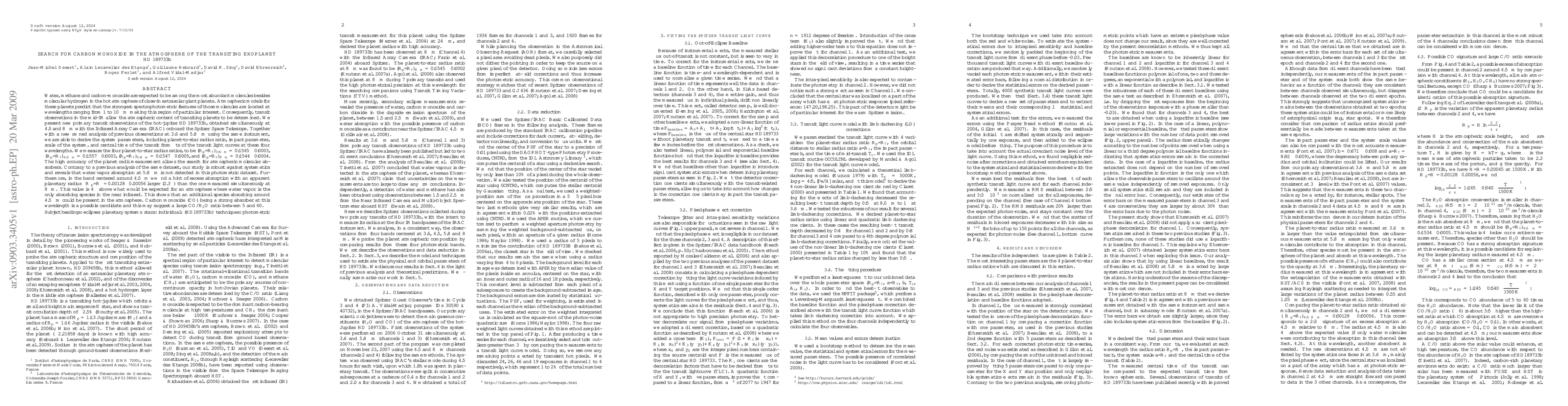 Researchers used Spitzer telescope data to search for carbon monoxide in the atmosphere of HD189733b, a hot exoplanet, finding hint of excess absorption around 4.5 micron that suggests CO may be present with high concentration compared to water vapor.