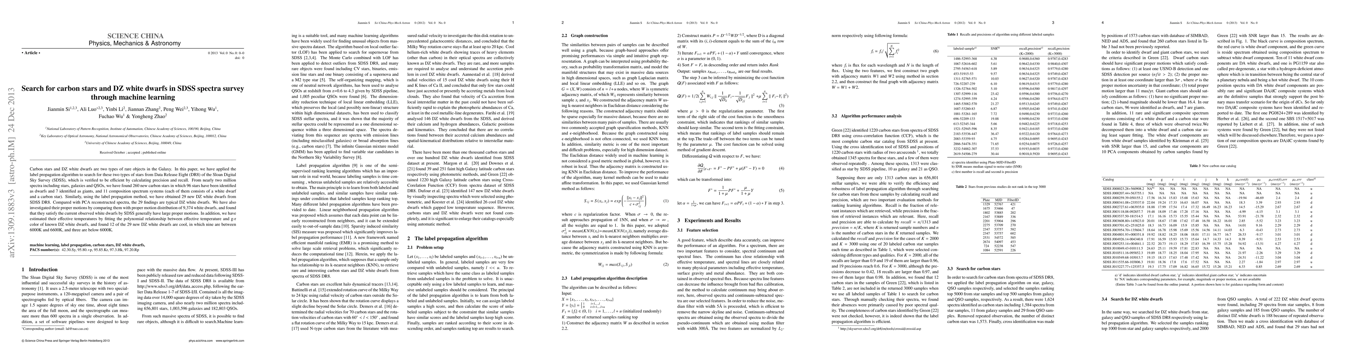 Researchers used machine learning to discover 260 new carbon stars and 29 new DZ white dwarfs in Sloan Digital Sky Survey data, verifying their findings through precision and recall calculations.
