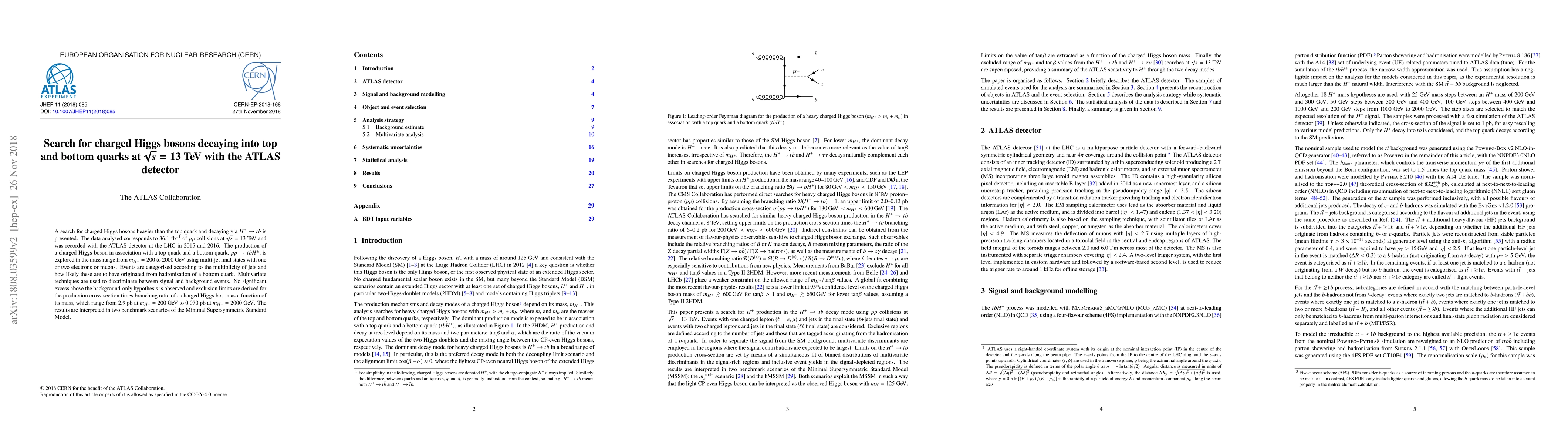This paper reports a search for charged Higgs bosons decaying into top and bottom quarks using 36.1 fb$^{-1}$ of data from 13 TeV proton-proton collisions at the LHC, analyzed with the ATLAS detector. No significant excess is observed, leading to exclusion limits on the production cross-section times branching fraction in the mass range from 200 to 2000 GeV.