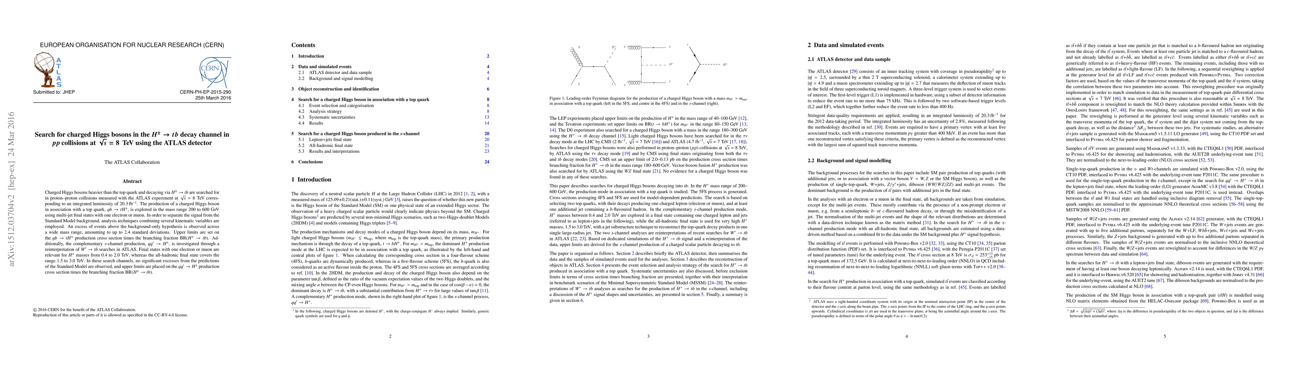This paper investigates the search for charged Higgs bosons ($H^{\pm}$) decaying into $tb$ pairs in proton-proton collisions at $\sqrt{s}=8$ TeV using the ATLAS detector, finding an excess of events up to 2.4 standard deviations but no significant deviations from Standard Model predictions. Upper limits are set on the production cross sections for $gb \rightarrow tH^{\pm}$ and $qq' \rightarrow H^{\pm}$ processes.