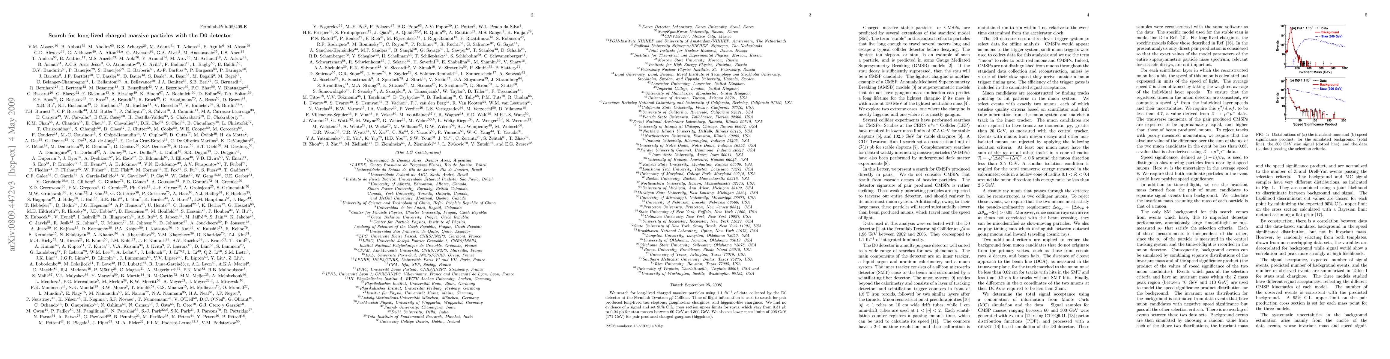 The D0 detector at the Fermilab Tevatron searched for charged massive long-lived particles using 1.1 fb$^{-1}$ of data, focusing on tau sleptons and charginos. No evidence was found, leading to upper limits on stau cross sections and lower mass limits for charginos.