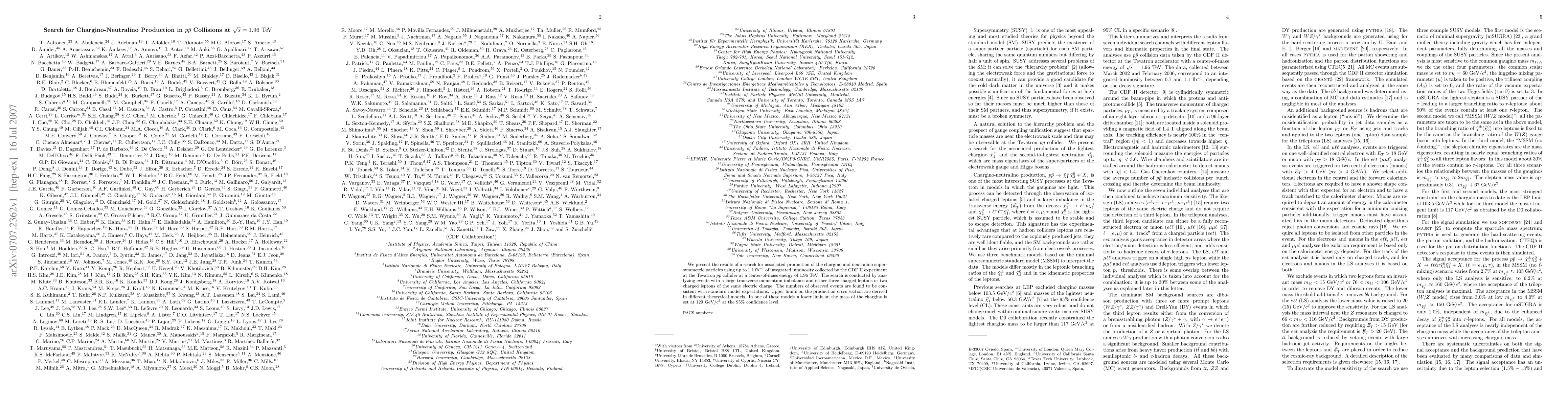 The CDF II experiment at the Tevatron searched for chargino-neutralino production in ppbar collisions at 1.96 TeV, finding no evidence of supersymmetry with observed events consistent with standard model predictions. Upper limits on production cross sections were derived, establishing a lower mass limit for the chargino at 129 GeV/c^2 at 95% confidence level.
