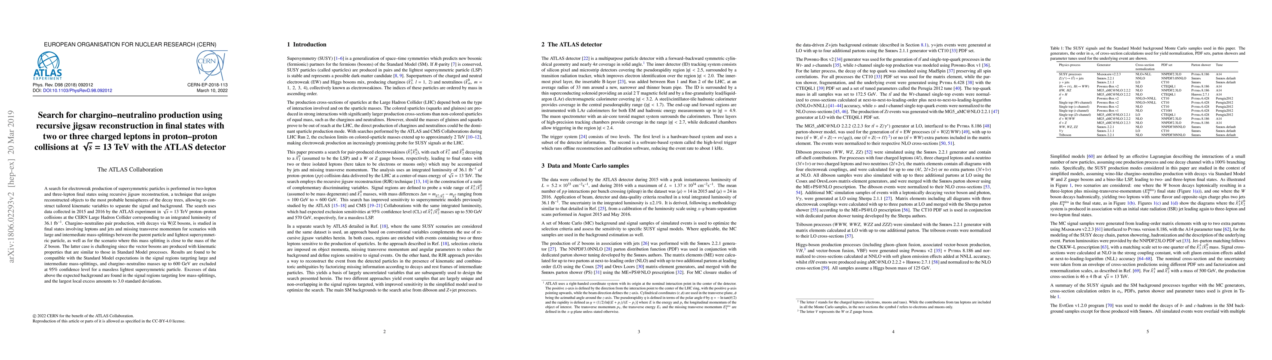 The ATLAS experiment searched for chargino-neutralino production in events with two or three charged leptons at 13 TeV proton-proton collisions, finding no significant deviations from Standard Model predictions. Chargino-neutralino masses up to 600 GeV were excluded for a massless lightest supersymmetric particle.