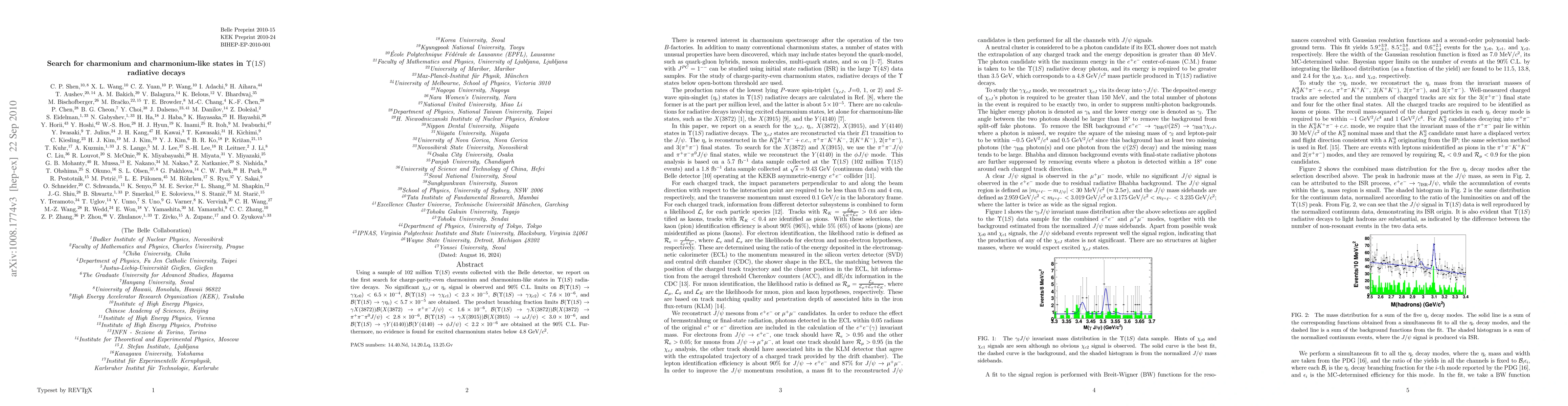 Researchers searched for charmonium states in decays of the Upsilon(1S) particle using 102 million events; no significant signals were found, setting limits on branching fractions.