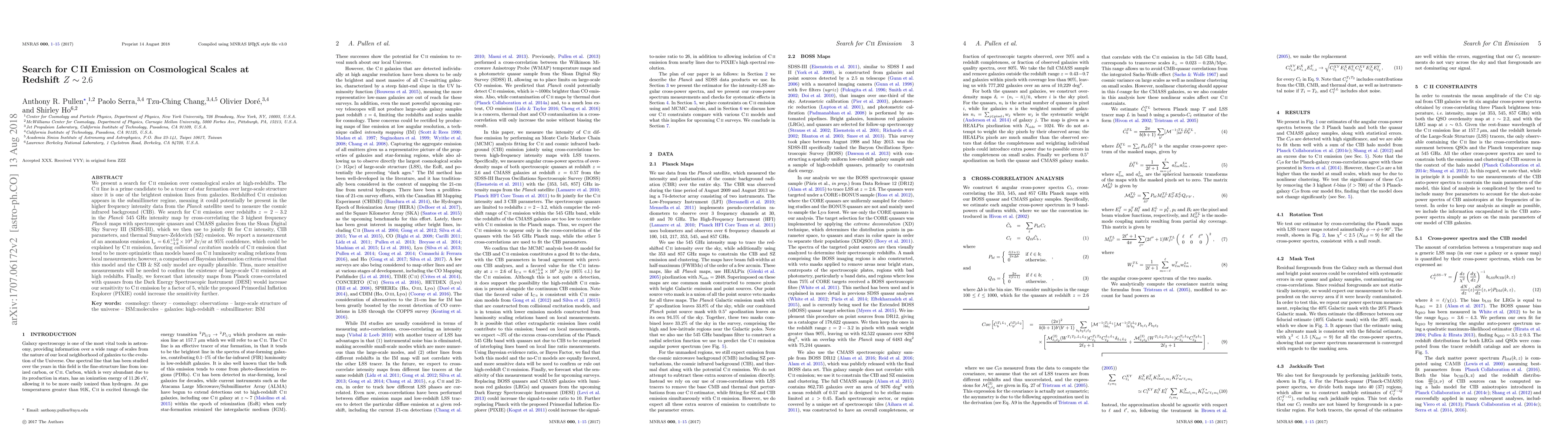 We present a search for CII emission over cosmological scales at high-redshifts. The CII line is a prime candidate to be a tracer of star formation over large-scale structure since it is one of the brightest emission lines from galaxies. Redshifted CII emission appears in the submillimeter regime, meaning it could potentially be present in the higher frequency intensity data from the Planck satellite used to measure the cosmic infrared background (CIB). We search for CII emission over redshifts z=2-3.2 in the Planck 545 GHz intensity map by cross-correlating the 3 highest frequency Planck maps with spectroscopic quasars and CMASS galaxies from the Sloan Digital Sky Survey III (SDSS-III), which we then use to jointly fit for CII intensity, CIB parameters, and thermal Sunyaev-Zeldovich (SZ) emission. We report a measurement of an anomalous emission $\mathrm{I_\nu}=6.6^{+5.0}_{-4.8}\times10^4$ Jy/sr at 95% confidence, which could be explained by CII emission, favoring collisional excitation models of CII emission that tend to be more optimistic than models based on CII luminosity scaling relations from local measurements; however, a comparison of Bayesian information criteria reveal that this model and the CIB & SZ only model are equally plausible. Thus, more sensitive measurements will be needed to confirm the existence of large-scale CII emission at high redshifts. Finally, we forecast that intensity maps from Planck cross-correlated with quasars from the Dark Energy Spectroscopic Instrument (DESI) would increase our sensitivity to CII emission by a factor of 5, while the proposed Primordial Inflation Explorer (PIXIE) could increase the sensitivity further.
