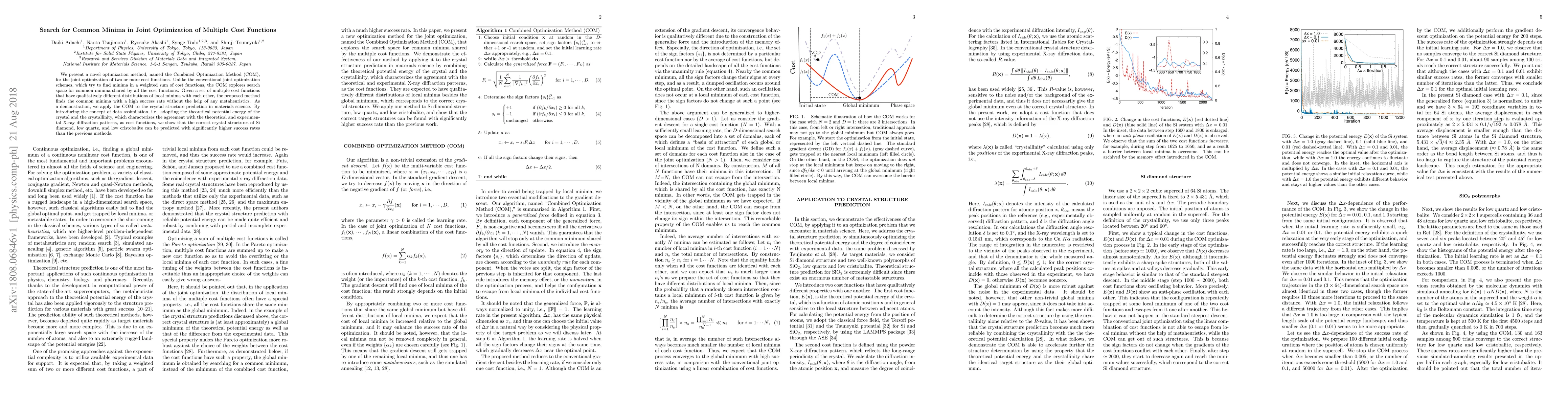 The Combined Optimization Method (COM) is introduced to jointly optimize multiple cost functions by finding common minima rather than a weighted sum. Applied to crystal structure prediction, it achieves higher success rates in predicting correct structures compared to previous methods.