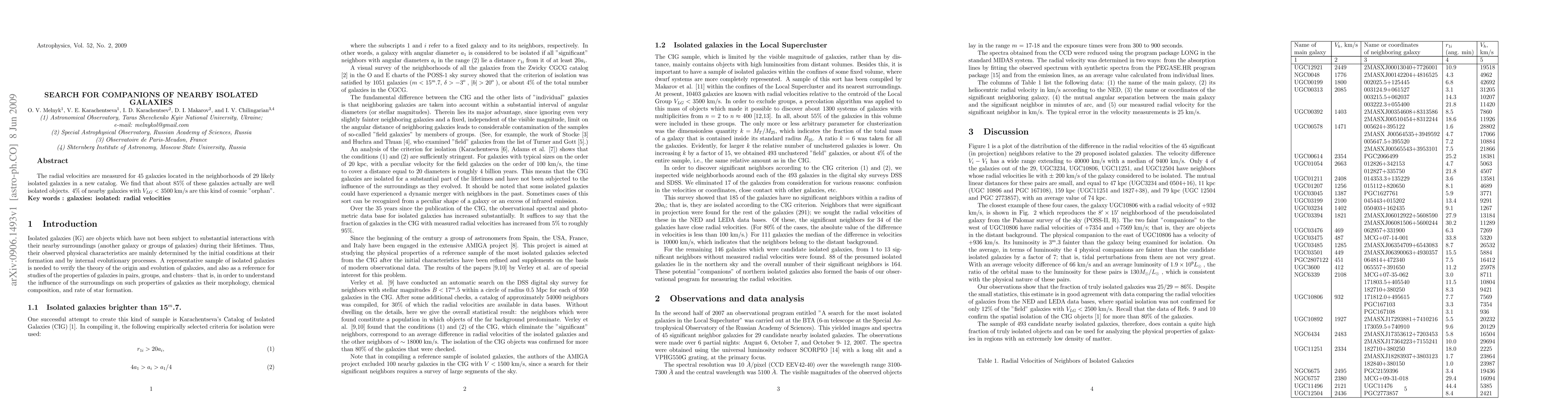 Summary: A study measures radial velocities for 45 galaxies near 29 likely isolated galaxies, finding that 85% are indeed isolated, with only 4% of nearby galaxies under 3500 km/s being cosmic "orphans" without companions.
