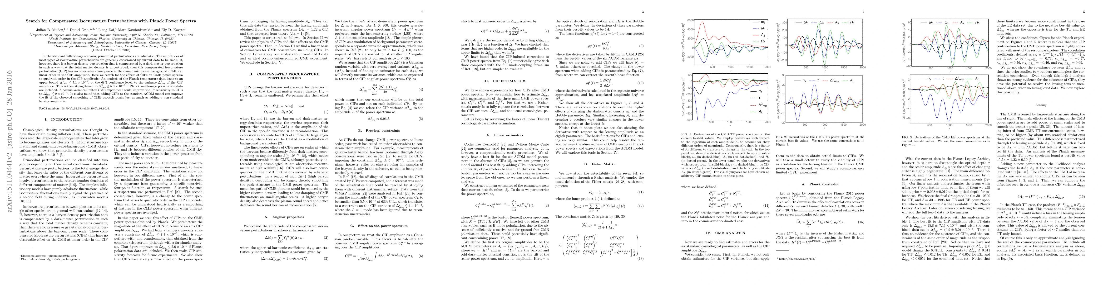 In the standard inflationary scenario, primordial perturbations are adiabatic. The amplitudes of most types of isocurvature perturbations are generally constrained by current data to be small. If, however, there is a baryon-density perturbation that is compensated by a dark-matter perturbation in such a way that the total matter density is unperturbed, then this compensated isocurvature perturbation (CIP) has no observable consequence in the cosmic microwave background (CMB) at linear order in the CIP amplitude. Here we search for the effects of CIPs on CMB power spectra to quadratic order in the CIP amplitude. An analysis of the Planck temperature data leads to an upper bound $\Delta_{\rm rms}^2 \leq 7.1\times 10^{-3}$, at the 68\% confidence level, to the variance $\Delta_{\rm rms}^2$ of the CIP amplitude. This is then strengthened to $\Delta_{\rm rms}^2\leq 5.0\times 10^{-3}$ if Planck small-angle polarization data are included. A cosmic-variance-limited CMB experiment could improve the $1\sigma$ sensitivity to CIPs to $\Delta^2_{\rm rms} \lesssim 9\times 10^{-4}$. It is also found that adding CIPs to the standard $\Lambda$CDM model can improve the fit of the observed smoothing of CMB acoustic peaks just as much as adding a non-standard lensing amplitude.