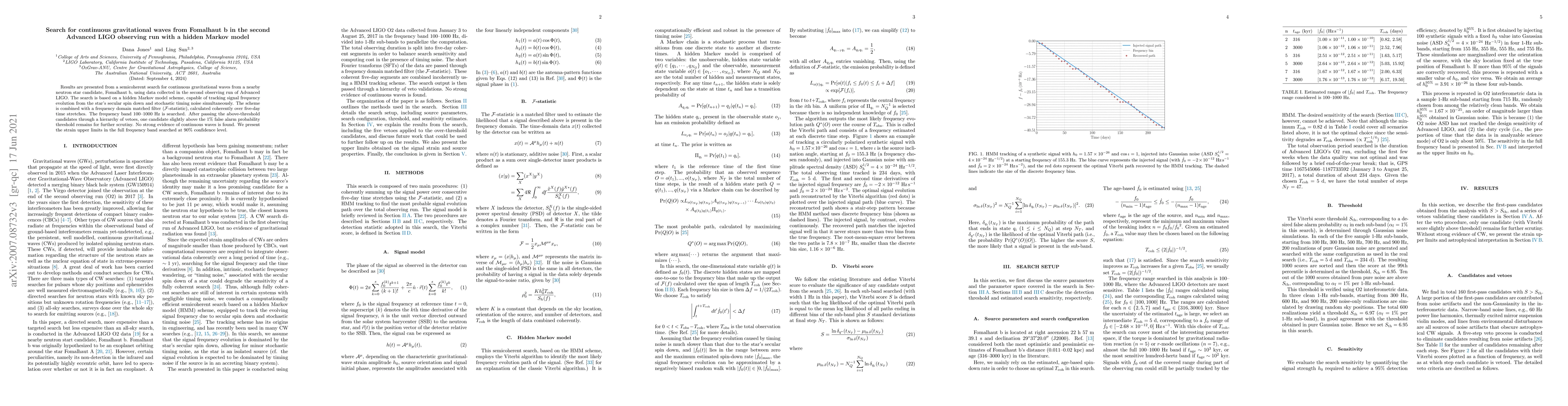 This study employs a hidden Markov model and matched filter to search for continuous gravitational waves from the neutron star candidate Fomalhaut b during the second Advanced LIGO observing run. Despite identifying one candidate above the 1% false alarm threshold, no strong evidence of continuous gravitational waves was found, and upper limits on strain were established for the 100-1000 Hz frequency band.