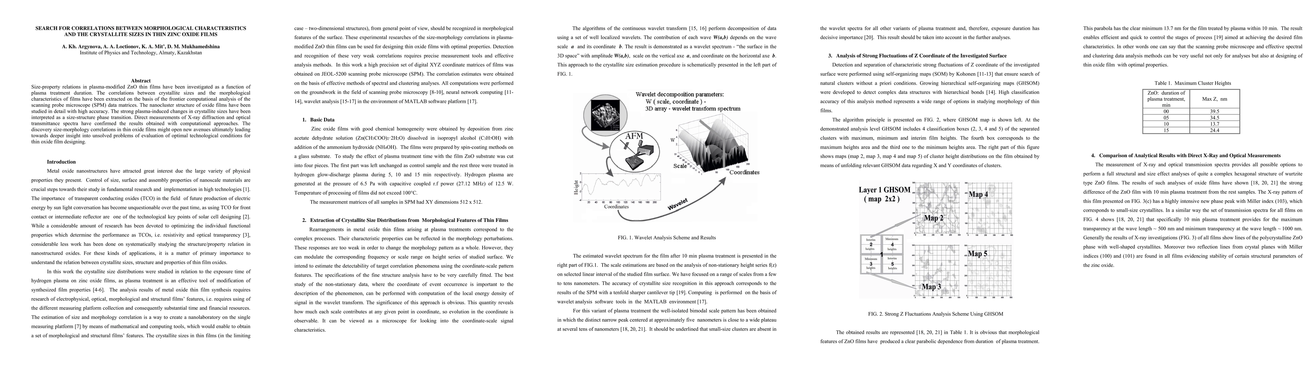 This research investigates the relationship between crystallite sizes and morphological features in plasma-treated ZnO thin films. Utilizing advanced SPM data analysis and X-ray diffraction, the study reveals significant plasma-induced changes in crystallite sizes, interpreted as a phase transition. These findings could guide the development of optimal conditions for designing thin oxide films.