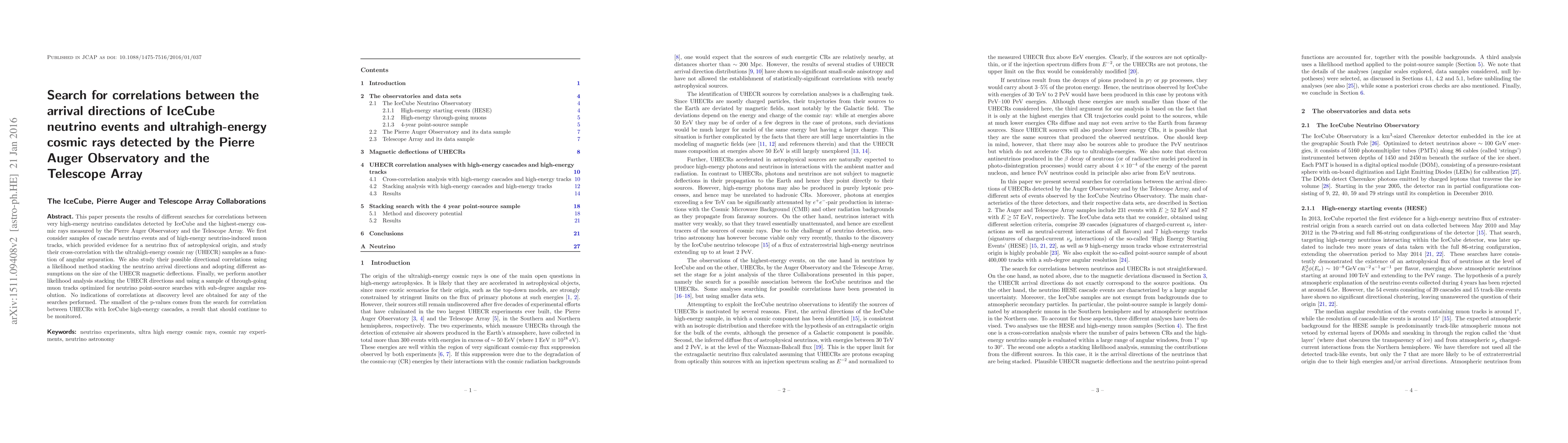 This study investigates potential correlations between high-energy neutrino events from IceCube and ultrahigh-energy cosmic rays from the Pierre Auger Observatory and Telescope Array, finding no significant correlations at the discovery level. The smallest p-value suggests a need for continued monitoring of the correlation between UHECRs and IceCube high-energy cascades.