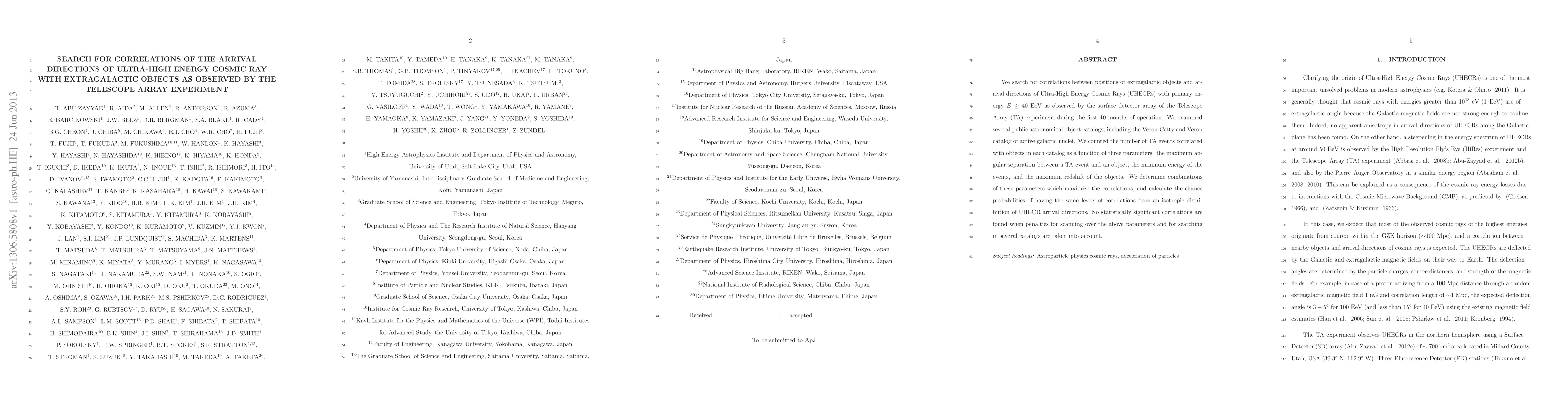 Researchers searched for correlations between UHECR arrival directions and extragalactic objects, but found no statistically significant correlations after accounting for scanning penalties.