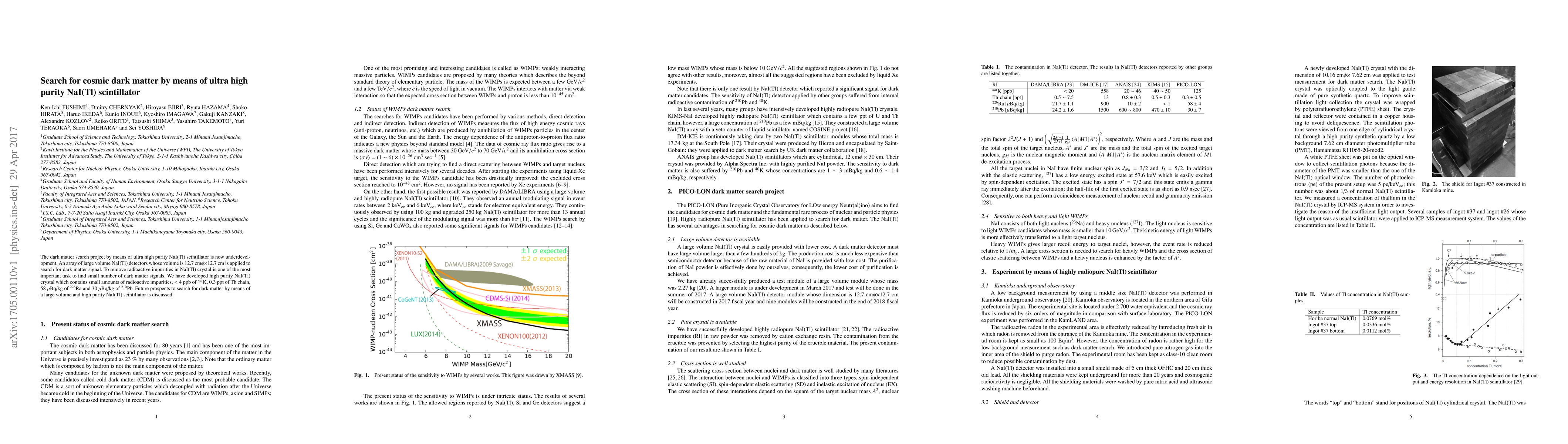 The dark matter search project by means of ultra high purity NaI(Tl) scintillator is now underdevelopment. An array of large volume NaI(Tl) detectors whose volume is 12.7 cm$\phi\times$12.7 cm is applied to search for dark matter signal. To remove radioactive impurities in NaI(Tl) crystal is one of the most important task to find small number of dark matter signals. We have developed high purity NaI(Tl) crystal which contains small amounts of radioactive impurities, $<4$ ppb of $^{nat}$K, 0.3 ppt of Th chain, 58 $\mu$Bq/kg of $^{226}$Ra and 30 $\mu$Bq/kg of $^{210}$Pb. Future prospects to search for dark matter by means of a large volume and high purity NaI(Tl) scintillator is discussed.