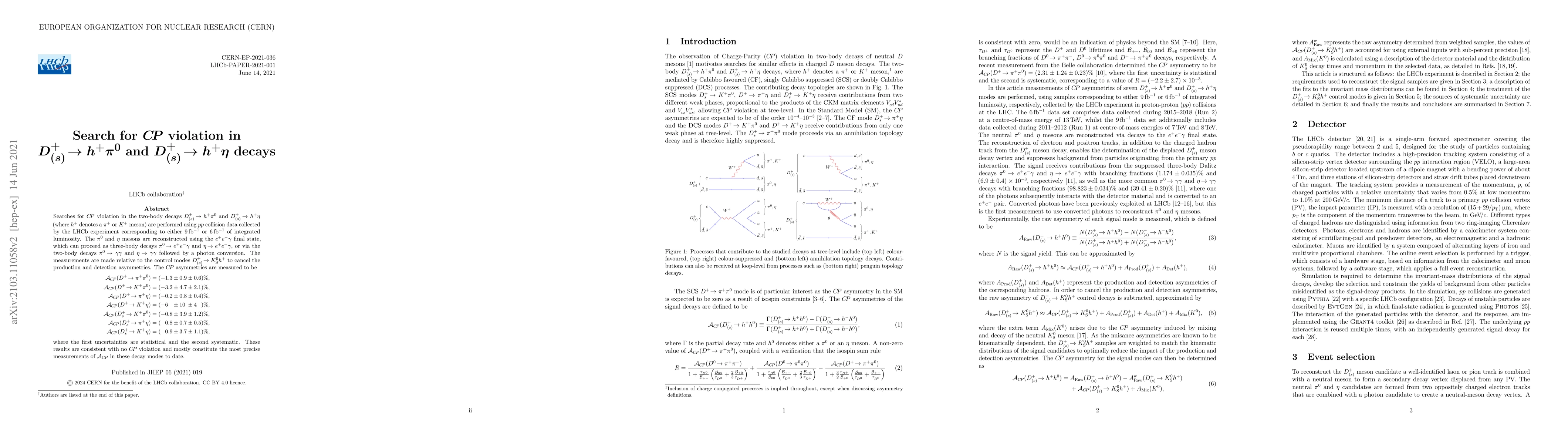 The paper investigates $CP$ violation in the decays of $D_{(s)}^{+}$ mesons to $h^{+}\pi^{0}$ and $h^{+}\eta$, finding no significant $CP$ asymmetry. Measurements, using LHCb data, are precise and consistent with no $CP$ violation.