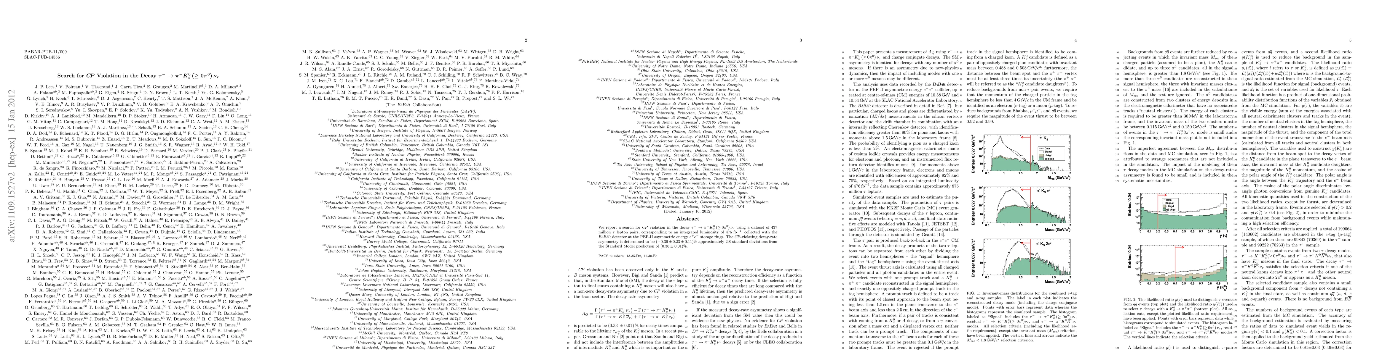 This study investigates CP violation in the decay of tau leptons into pions and kaons using data from the BABAR detector. The observed CP-violating asymmetry is found to be -0.45% ± 0.24% ± 0.11%, significantly deviating from the Standard Model prediction of 0.33% ± 0.01%.