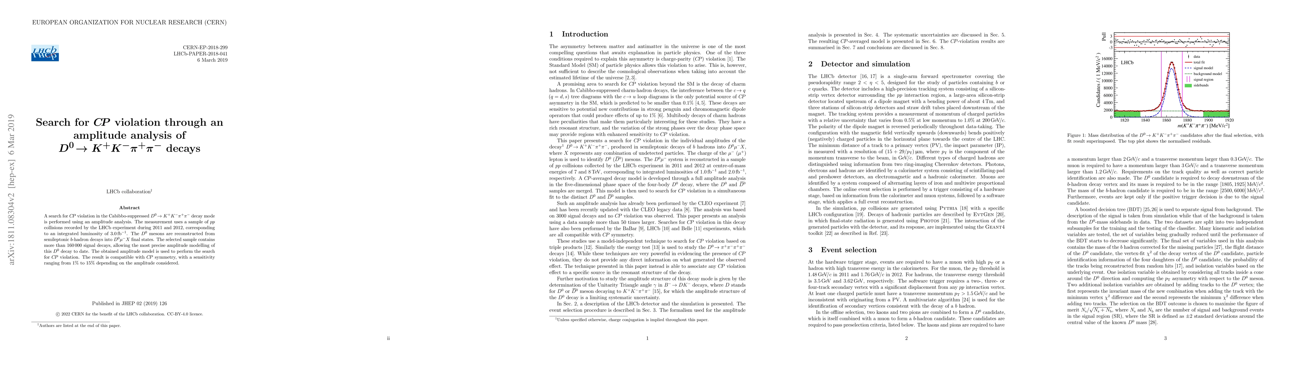 Researchers used LHCb data to search for CP violation in a specific D^0 decay mode and found no evidence of it, with sensitivity ranging from 1% to 15% depending on the amplitude considered.