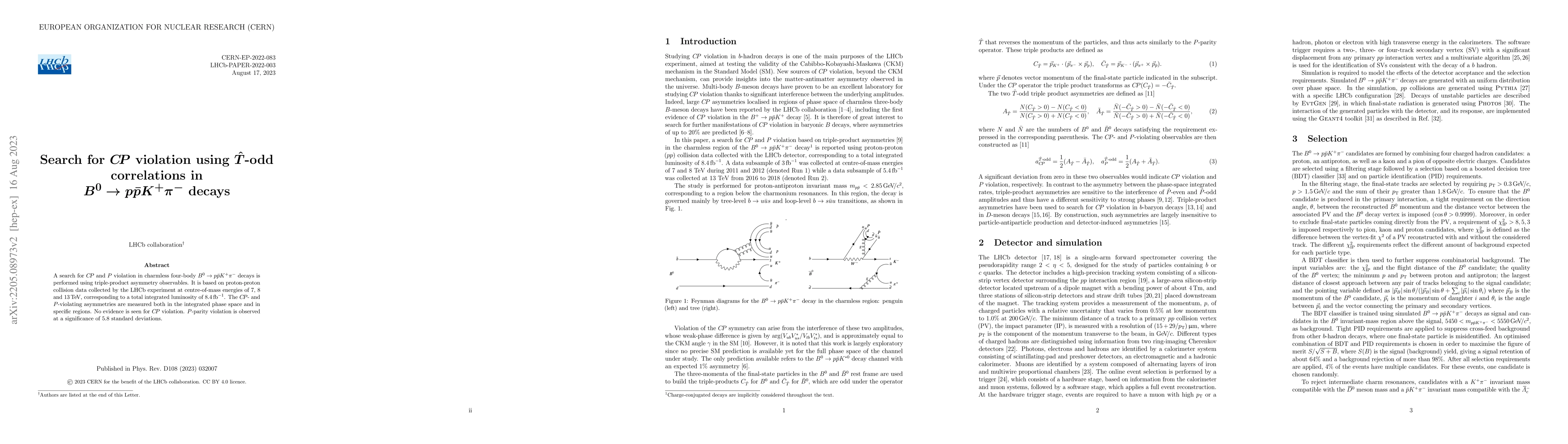 This paper investigates $CP$ and $P$ violation in $B^{0} \to p \bar p K^{+} \pi^{-}$ decays using LHCb data at various energies, finding no evidence for $CP$ violation but observing $P$-parity violation at a 5.8-sigma significance.