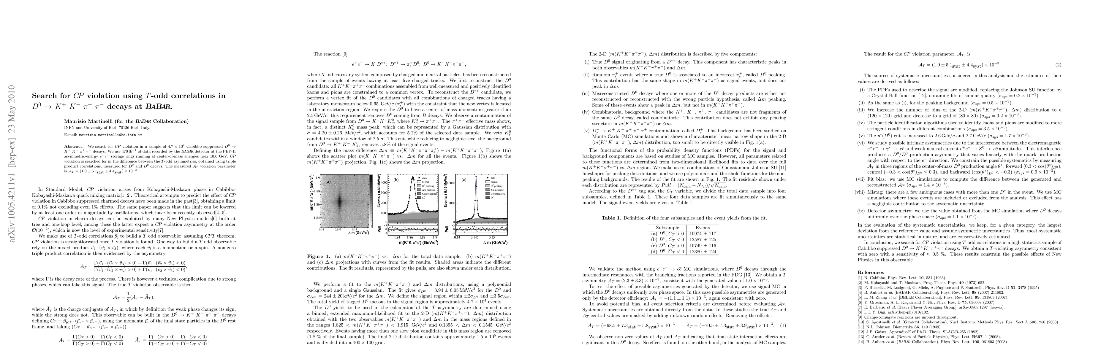 This paper investigates CP violation in Cabibbo suppressed D0 -> K+K-pi+pi- decays using 470 fb-1 of data from the BaBar experiment. The study finds no significant evidence of CP violation, reporting an At violation parameter of (1.0 ± 5.1_sta ± 4.4_sys) x 10^-3.