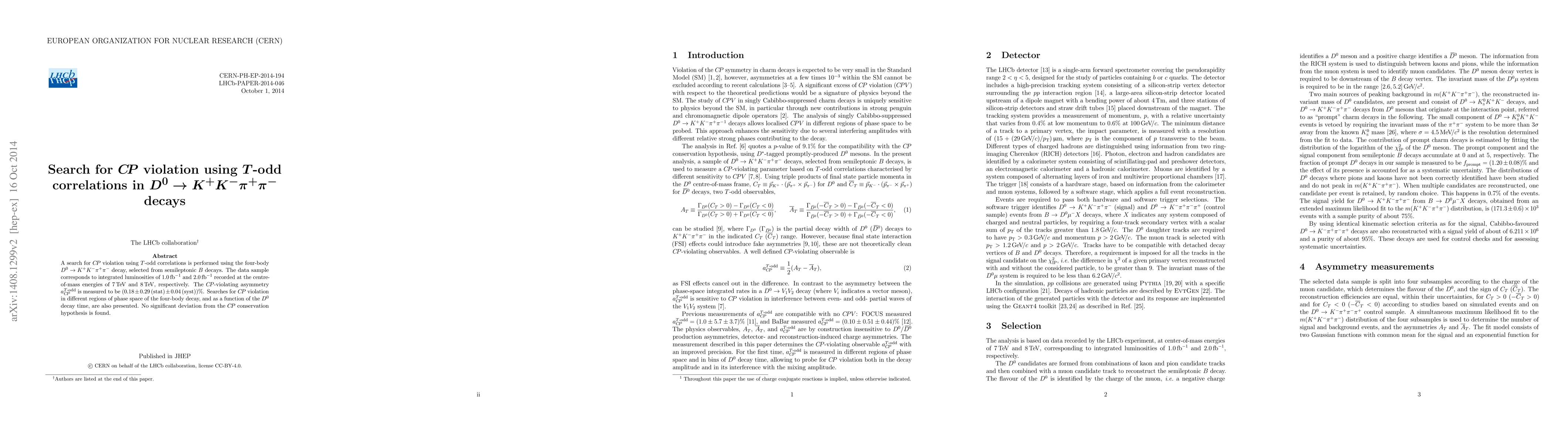 A search for CP violation in a specific type of particle decay found no significant deviation from conservation laws, with a measured asymmetry of 0.18%.
