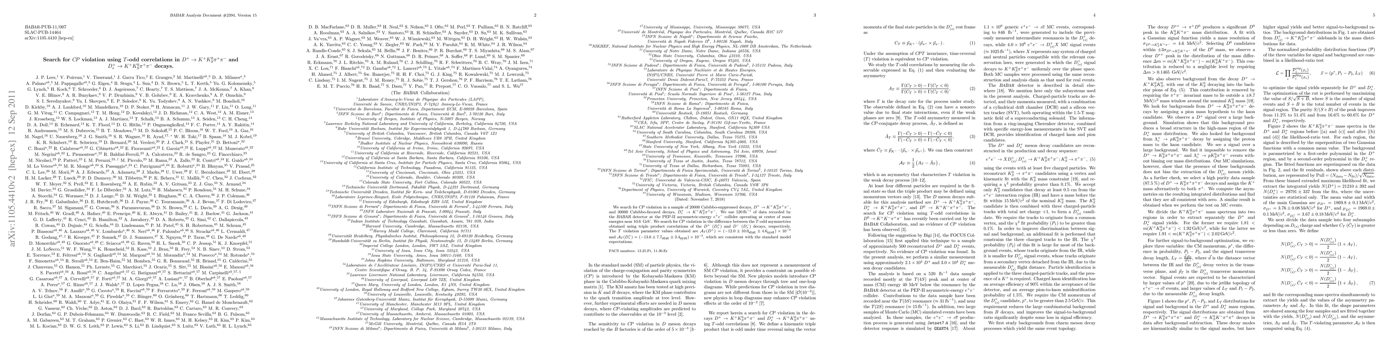 This paper investigates CP violation in the decays of $D^+$ and $D_s^+$ mesons using $T$-odd asymmetries from the BaBar detector. The results show no significant deviation from standard model predictions, with $T$ violation parameters $\mathcal{A}_T(D^+) = (-12.0 \pm 10.0_{stat} \pm 4.6_{syst})\times 10^{-3}$ and $\mathcal{A}_T(D_s^+) = (-13.6 \pm 7.7_{stat} \pm 3.4_{syst})\times 10^{-3}$.