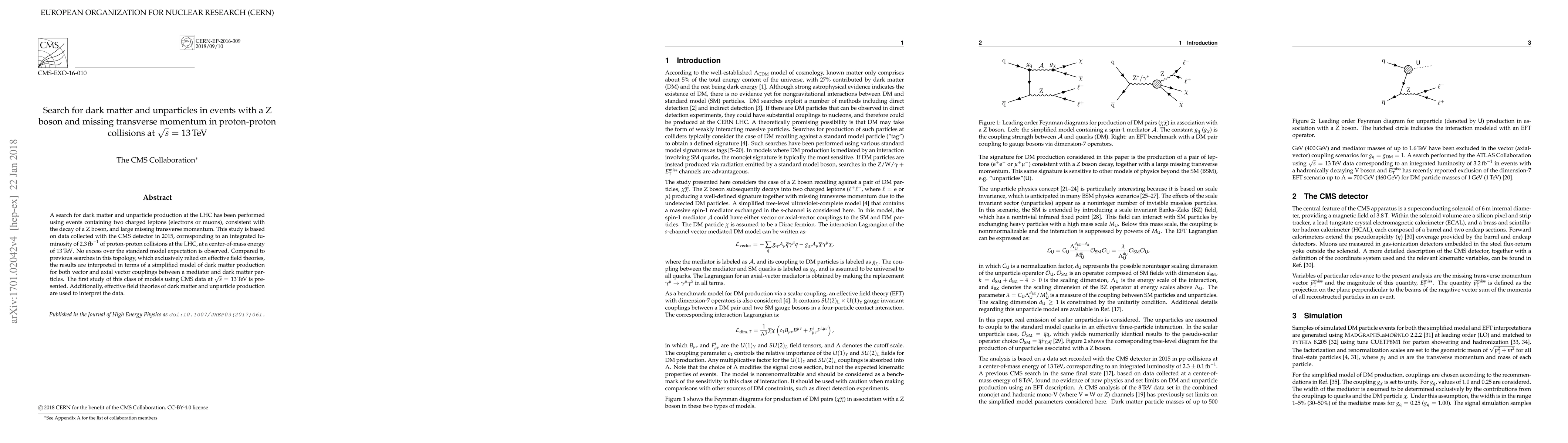 This paper investigates dark matter and unparticle production at the LHC using CMS detector data from 2015, focusing on events with a Z boson and significant missing transverse momentum. No observed excess over standard model predictions was found, and results are interpreted in terms of simplified dark matter models.