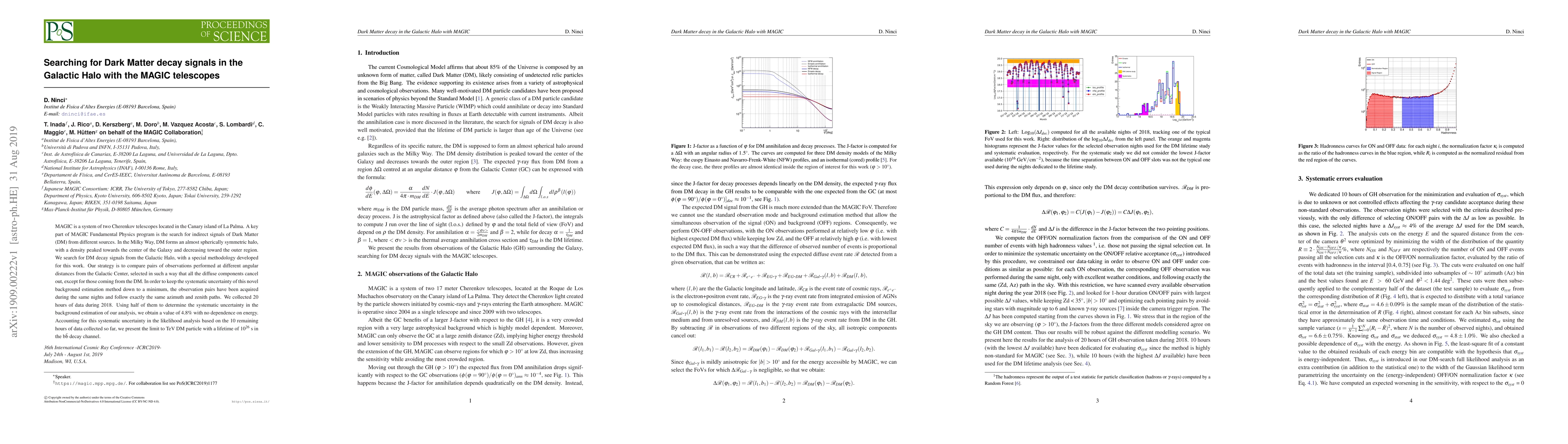 Researchers used the MAGIC telescopes to search for dark matter decay signals in the Milky Way's halo, setting a limit on the lifetime of a TeV dark matter particle with a $10^{26}$ s lifetime.