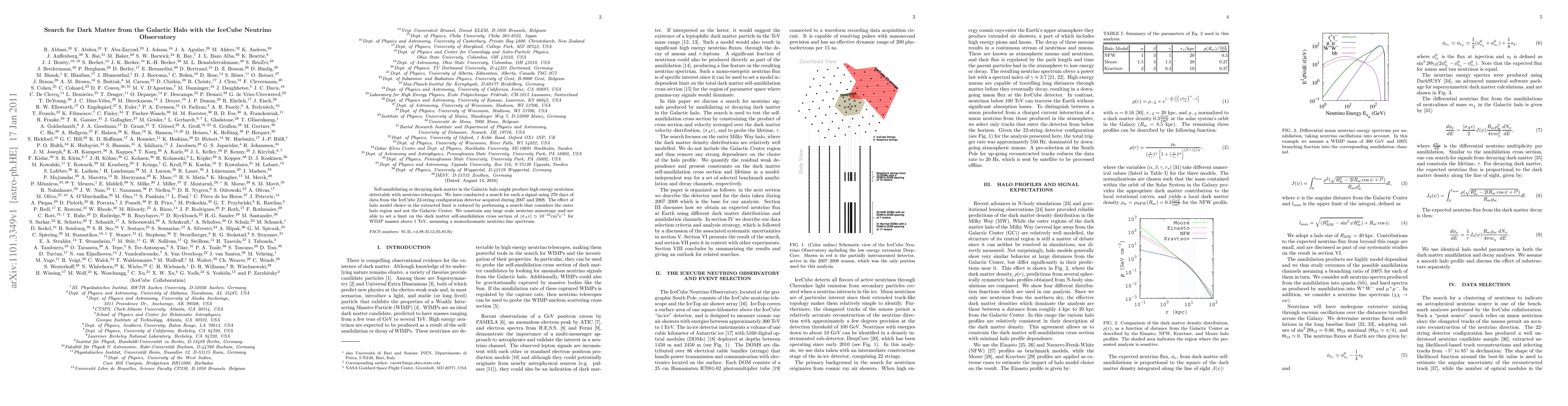 This paper reports a search for high-energy neutrinos from self-annihilating dark matter in the Galactic halo using the IceCube Neutrino Observatory, finding no significant signal and setting a limit on the dark matter self-annihilation cross section for WIMPs above 1 TeV. The study minimizes halo model dependence by focusing on the outer halo region.