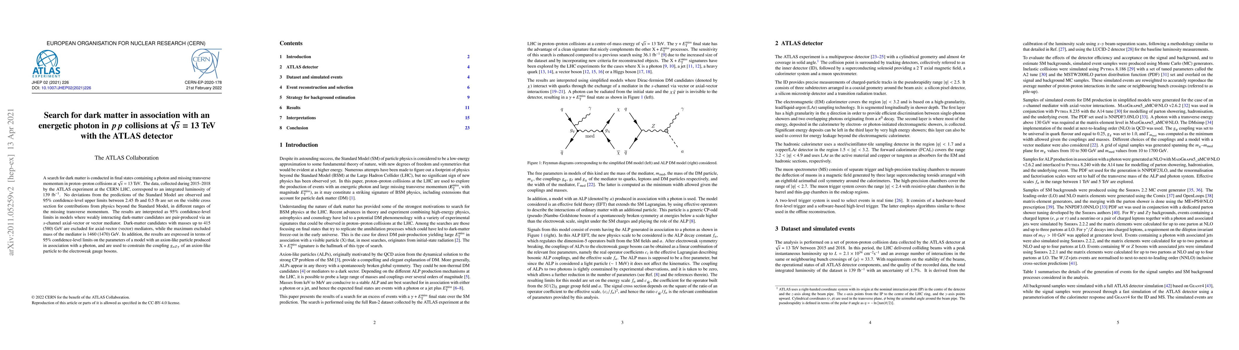 This paper reports a search for dark matter in proton-proton collisions at 13 TeV using the ATLAS detector, finding no evidence for dark matter and setting upper limits on its production cross section. The results exclude dark-matter candidates up to certain masses and constrain the coupling of axion-like particles to electroweak gauge bosons.