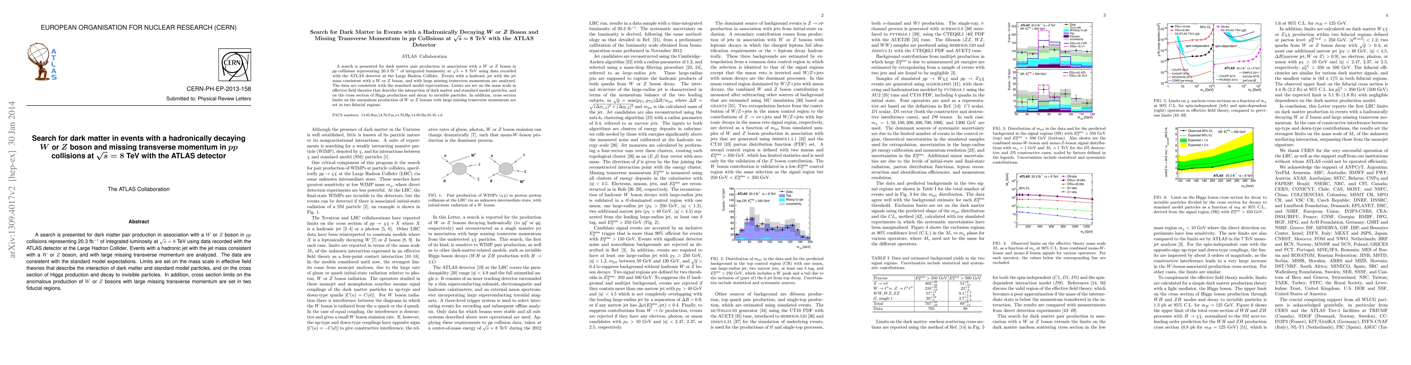 This paper reports a search for dark matter produced alongside W or Z bosons in proton-proton collisions at the LHC using the ATLAS detector, analyzing events with large missing transverse momentum. No deviations from Standard Model predictions were found, leading to new limits on dark matter-Standard Model interactions.