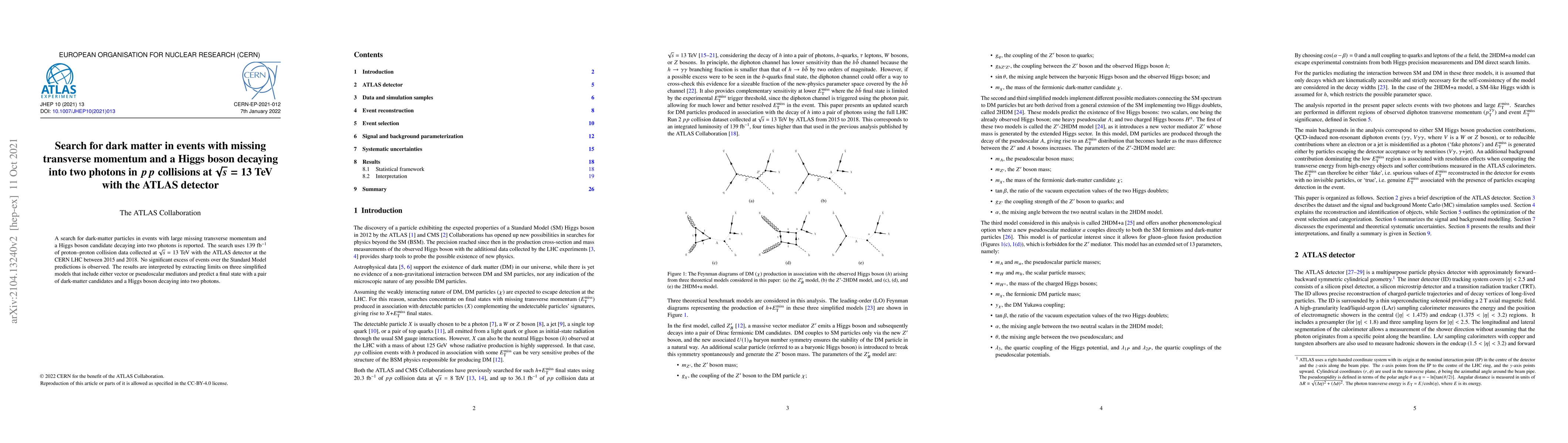 This paper reports a search for dark matter in proton-proton collisions at 13 TeV using the ATLAS detector, focusing on events with large missing transverse momentum and a Higgs boson decaying into two photons. No significant excess over Standard Model predictions was observed, leading to new limits on simplified dark matter models.