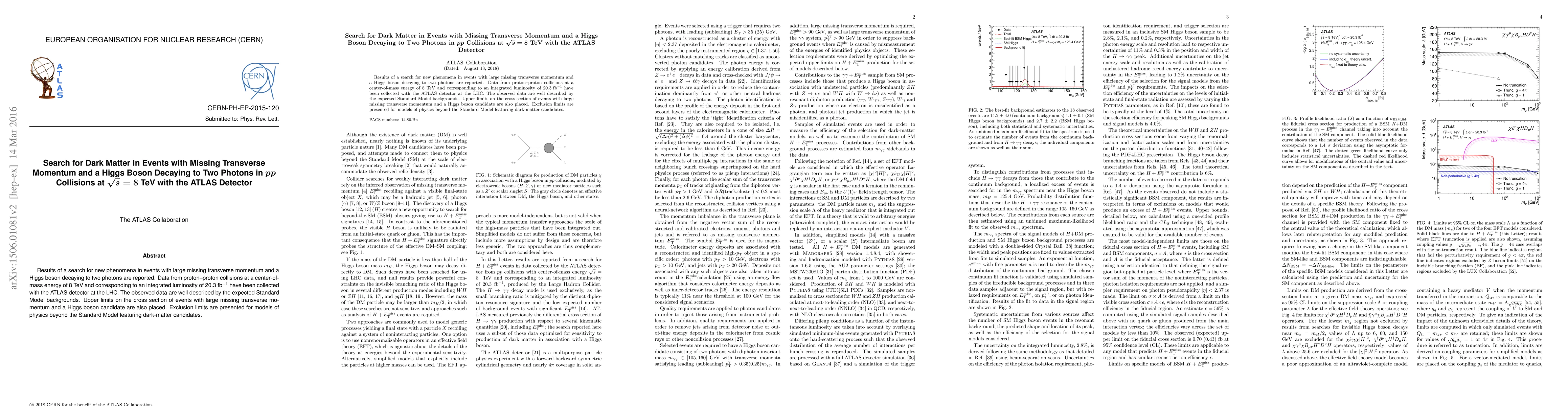 The ATLAS experiment at the LHC searched for dark matter in events with significant missing transverse momentum and a Higgs boson decaying to two photons, using 20.3 fb$^{-1}$ of data from 8 TeV proton-proton collisions. No deviations from Standard Model predictions were observed, leading to exclusion limits on dark-matter models.